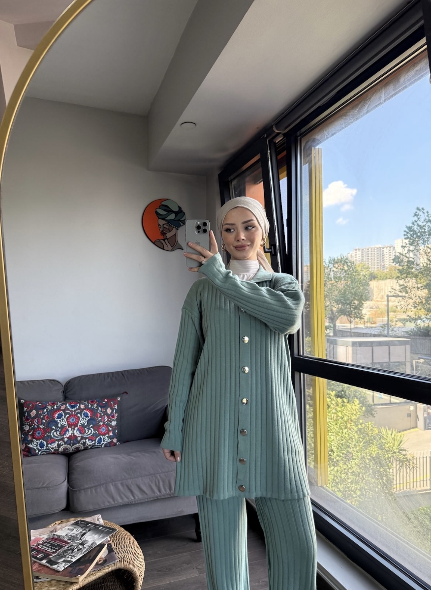 Full Düğmeli İkili Şık Triko Takım