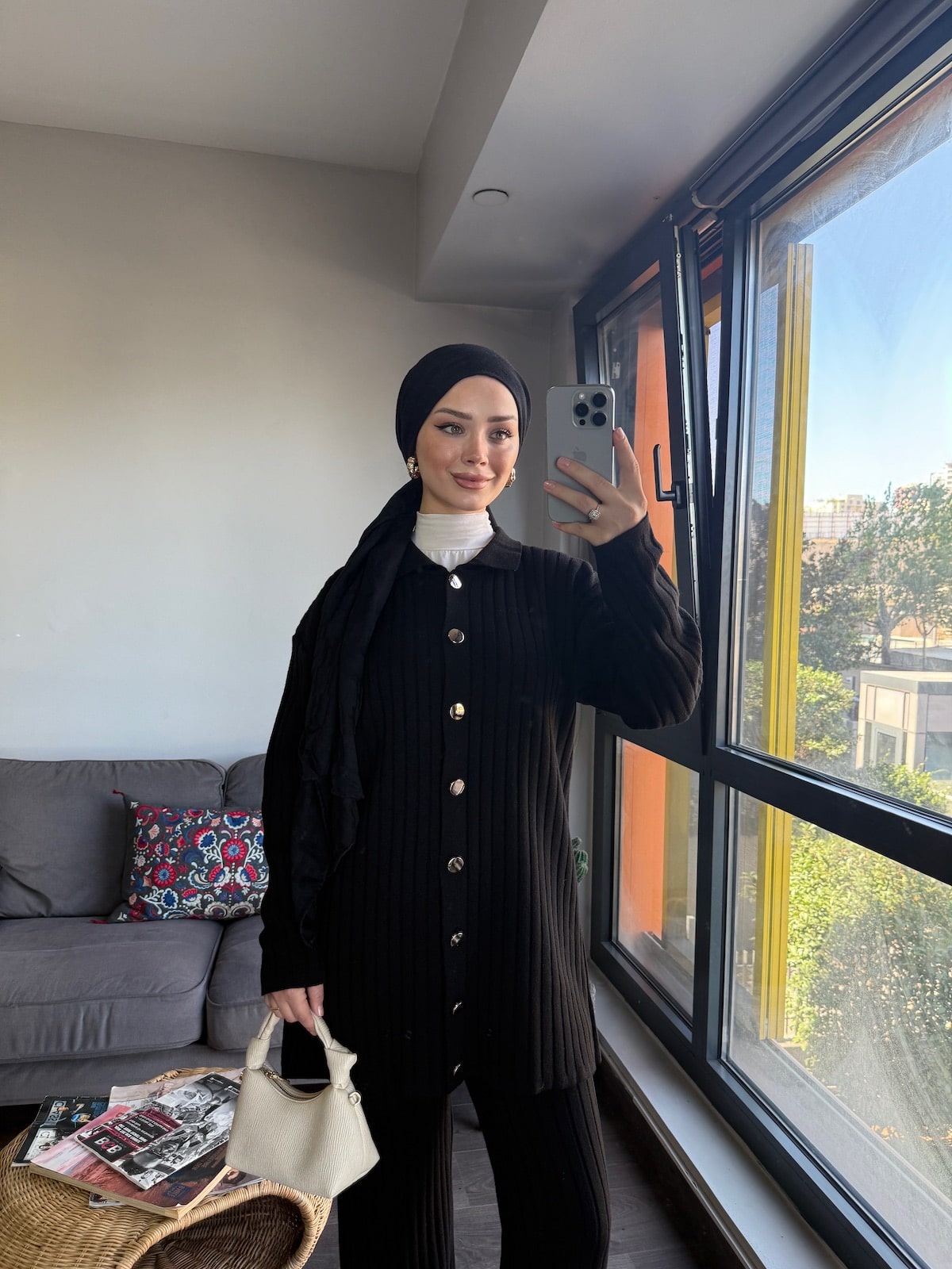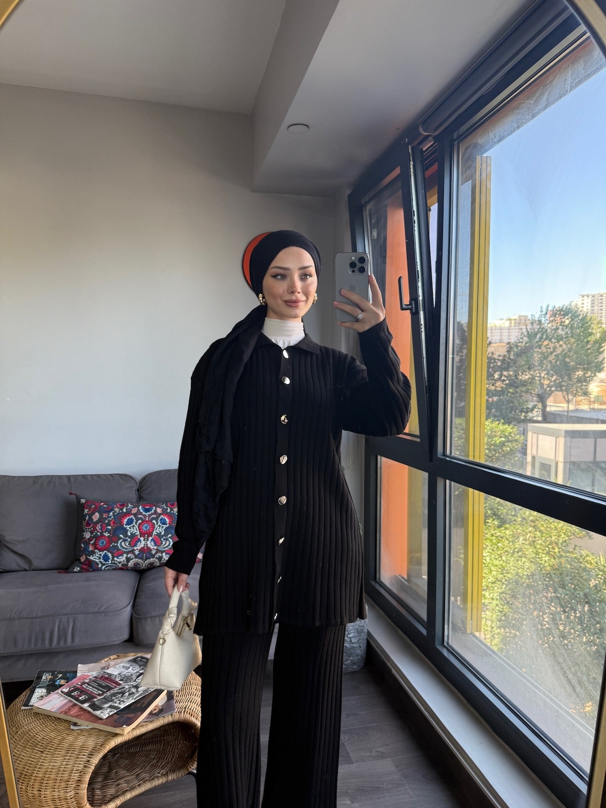 Triko açılabilir düğme detaylı komple fitilli (Emziren Anneler İçin Konforlu). Şık görünüm ve rahat dokuma. Pantolon beli lastikli detaylı bol paça. Tüğlenme yapmaz, yıkama talimatlarına uyulduğu sürece yıllarca dolabınızda yerini koruyacaktır. Şıklık ve Rahatlık bir arada.