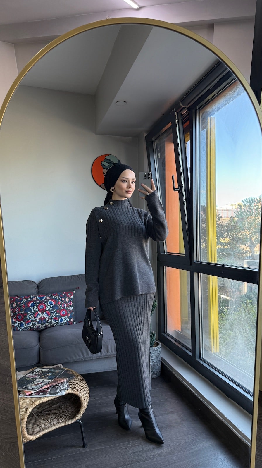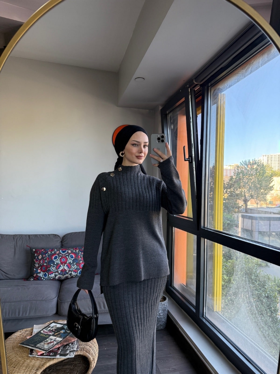 Triko üst boğaz ve düğme detaylı komple fitilli. Şık görünüm ve rahat dokuma. Etek beli lastik detaylı. Tüğlenme yapmaz, yıkama talimatlarına uyulduğu sürece yıllarca dolabınızda yerini koruyacaktır. Şıklık ve Rahatlık bir arada.